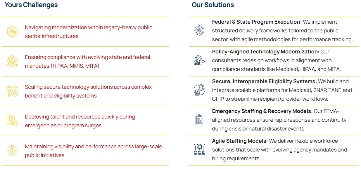 - Agile Staffing Models: We deliver flexible workforce solutions that scale with evolving agency mandates and hiring requirements.